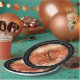 Celebrate the 8th or 32nd wedding anniversary with these commemorative paper plates! Elegant black and white serif lettering with hexagonal confetti on a bronze background add a memorable touch for this special occasion and (extraordinary) milestone. Customize with the happy couple's names, and add dates for their bronze anniversary. Wraparound text on the rims of the plate may be personalized with special congratulatory messages, or used as is.