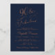 Chic dark navy blue 90th birthday party invitation featuring "90 & Fabulous" and her name in elegant calligraphy scripts and the event details in simple modern lettering, all rendered in your choice of genuine gold, silver or rose gold foil.