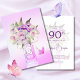 Celebrate a milestone with this elegant 90th birthday invitation, featuring a dreamy watercolor floral bouquet in a chic perfume bottle, accented with a soft pink butterfly. Perfect for sophisticated milestone birthday parties, this customizable template allows you to easily personalize the honoree’s name, event details, and RSVP information. A timeless design for women’s 90th birthday celebrations, luncheons, or special gatherings.
