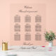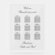Elegant 9 Table Seating Chart Acrylic Sign, please personalize the names of the couple and the names of the guests along with any of the other text that you may wish to personalize. An elegant seating chart featuring stylish black text in a clean minimalistic layout on a clear transparent background.