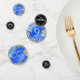 Add an extra special touch to 9th lapis lazuli wedding anniversary celebrations with this elegant table confetti set! Elegant white serif lettering with pyrite-dusted hexagonal confetti on a speckled, royal blue or black background add a memorable touch for this special occasion and milestone. Customize with the happy couple's names, years of marriage, and congratulatory message(s).