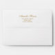 Elegant A7 golden script return address envelope. Address on the backside in golden script. Personalize these custom wedding envelopes with your address. An elegant border in golden colour is on the front side. The inside of the envelope is in golden colour.