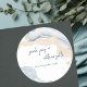 Elegant Abstract Blue Beige Coastal Beach Wedding Classic Round Sticker