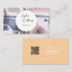 The front features a chic circular name placement surrounded by hand-drawn botanical elements and abstract textures, while the back keeps it functional and clean with space for all your key details — including a scannable QR code, email, social media handles, and website.