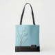 Elegant modern simple cute girly design features abstract of flower line art with turquoise colour background . Custom allover print tote bag personalized with your monogram name or other text. This stylish bag will be perfect as personalized gift.