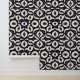 Elegant Abstract Floral Pattern in Black and Cream Wallpaper