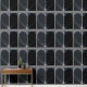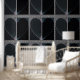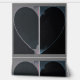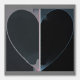 The artwork an elegant pattern of half heart design in black and dark grey colours. The design allows for customization of the background colour to fit with your space's colour palettes.