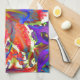 Elegant abstract retro red blue flower kitchen towel