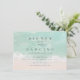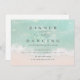 Romantic coastal themed dinner and dancing reception card features beautiful turquoise abstract watercolor sparkling ocean wave and beach background, toped with stylish script and elegant font event details, modern and simple, great for sand beach wedding, tropical destination wedding, coastal ocean themed wedding.