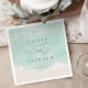 Romantic coastal themed wedding napkin features beautiful turquoise abstract watercolor sparkling ocean wave and beach background, toped with stylish script and elegant font names, modern and simple, great for sand beach wedding, tropical destination wedding, coastal ocean themed wedding.