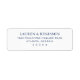 This is a classic style image featuring an elegant address label design with the names "Lauren & Benjamin" prominently displayed in a sophisticated serif font. The navy blue text contrasts beautifully against a clean white background, exuding a sense of timeless elegance and refinement. Perfect for wedding invitations or formal correspondence, this design adds a touch of class to any envelope it adorns.