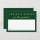 Elegant green and gold enclosure card for your graduation announcements and party invitations for family and friends to express their advice and hopes for the grad's future. "Advice & Wishes For The Graduate" is written in classic script and typography. On the back, personalize with the grad's name, school and class year.