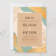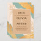 A modern and elegant invitation with swirls of teal and gold and glimpses of lily flowers. (<a href='https://www.freepik.com/free-photos-vectors/wedding'>Wedding vector created by freepik - www.freepik.com</a>). <br/><br/>The card is easy to customize with your wording, font, font colour, paper shape options and choice of six paper types.<br/><br/>Not exactly what you're looking for? All our products can be custom designed to meet your needs at no extra charge.<br/><br/>Simply contact us at askcottonlamb@gmail.com.<br/><br/>Coordinating products available: Just ask us!"