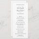 Elegant black and white wedding program featuring a simple and minimal design with a large ampersand behind the names of the bride and groom in a traditional serif font. A classic choice that is perfect for a formal wedding.