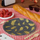 Paper plates with aa pretty pattern - black background with fancy gold feathers floating downward. Sophisticated stylish design.