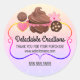 © Socialite Designs Inc. Elegant and colourful bakery packaging seal has an assortment of baked goods design and a doodle banner frame. The background has colourful rainbow pattern. Use these stickers to seal your baked goods boxes or pouches.