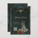 Elegant and romantic vintage design. The dark green vintage background gives the design a timeless touch, while the ornate frame harmoniously encloses the overall image. A large emerald green heart adorned with delicate gold accents and embedded in a decorative flourish symbolizes the couple's love and connection. The main focus is on the artfully designed silhouette of a bride and groom united in a graceful dance.