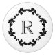 A round knob in black and white with a vintage wreath motif and a place for your monogram.