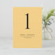 Help your guests find their table with this elegant yellow modern table number. Double sided card. Clear space all around giving you the liberty to display with table holder or frame. Attractive yellow background and black text. Several colour options. Matching seating chart cards and menus available. Have all table numbers in same colour or mix colours according to your event's colour theme. Part of our "Elegant Yellow Event Signs and Products" collection with a variety of coordinating products available.