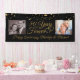 Celebrate a 50th golden wedding anniversary (or any anniversary) with this personalized black and gold 2 photo banner with an editable elegant calligraphy script typography design 50 YEARS INTO FOREVER accented with faux gold metallic hearts and personalized with your custom text. PHOTO TIP: For fastest/best results, choose a photo with the subject in the middle and/or pre-crop it to a similar shape as shown BEFORE uploading and use the CHANGE tab next to the sample photo in the PERSONALIZE section. CHANGES: Change the background colour, select a styled graphics background or change the text font style, colour, size and placement for a custom look by clicking on CUSTOMIZE FURTHER in the PERSONALIZE section. Contact the designer via Zazzle Chat or makeitaboutyoustore@gmail.com if you'd like this design modified, on another product or would like coordinating items.