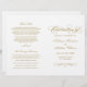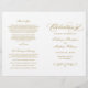 Elegant white and antique gold "Celebration of Sacrament of Matrimony" wedding ceremony programs include vintage calligraphy script writing with beautiful flourishes and a scroll design accent. Personalize the custom text for your bridal party, ceremony information, thank you, and in memory (or other) messages. Note: these text weight paper programs arrive flat and require folding to assemble.