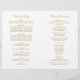 Grand antique gold calligraphy spells out "The Wedding Of" in sweeping ornate script across this elegant ceremony program. Decorative scroll flourishes in warm gold frame the design on a clean white background for a timeless, formal look. Inside pages are fully customizable for your bridal party, ceremony order, and a personal thank you message on the back cover. Programs are printed on text-weight paper and arrive flat, requiring a simple centre fold.