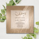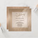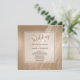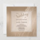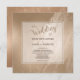 Shiny antique gold is laced with marbling on the background of this elegant wedding invitation. Your custom text is in brown beneath the soft gold brown typography that says "the Wedding of". The text is placed on a semi-transparent square banner with a thin line border. The back of the invitation has the soft gold marbled background.