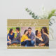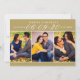 These modern and stylish wedding save the date announcement cards include three 2 x 3" engagement photos with the date featured in elegant script writing. Personalize the card template wording on the front and back of the card for your big day. The antique gold background and text colour can be customized to coordinate with your wedding colour scheme.