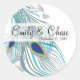 Elegant Aqua Grey 3 Peacock Feathers Wedding Classic Round Sticker