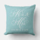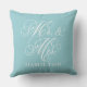 Elegant Aqua Mr and Mrs Script Custom Monogram Throw Pillow