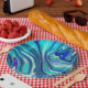 Add a touch of New Zealand to parties with these stylish paper plates, which feature elegant and random iridescent, cerulean blue, and purple swirls inspired by paua (rainbow abalone) shells.