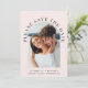 Modern light pink wedding save the date card featuring your photo in an arch frame and "Please Save The Date" in elegant text. Under your photo, add your first names, wedding date and location. On the reverse side, personalize the save the date details in simple typography.