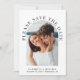 Modern wedding save the date card featuring your photo in an arch frame surrounded by "Please Save The Date" in elegant text. Under your photo, add your first names, wedding date and location. On the reverse side, personalize the save the date details in simple typography.