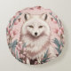 Elegant Arctic Fox Pink Floral Round Pillow