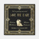 Save the Date magnet. Classic art deco frame and elegant typography with a gold silhouette of a bride and groom. Customise with names and date.