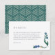 Cette élégante carte d'hébergement de la Collection Gatsby présente des fleurs de style art déco dessinées à la main dans des tons bleu marine, vert et turquoise avec une pop de jaune moutarde. Inclure des informations sur cette carte comme les informations sur les déplacements et l'hôtel, les détails de la cérémonie ou les heures de début de la réception.