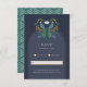 This elegant RSVP Enclosure Card from the Gatsby Collection features hand-drawn, art deco-style florals in shades of green and turquoise with a pop of mustard yellow. Guests have the option to mail in their Response or you can include instructions for them to RSVP online.