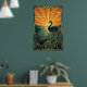 Elegant Art Deco Swan Sunset Lake Poster