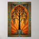 Elegant Art Deco Willow Tree Sunset Gold Poster