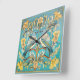 Elegant Art Nouveau Birds Pat#23 Teal Peach ID1078 Square Wall Clock
