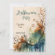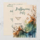 This Halloween party invitation card features a sophisticated watercolor design that combines organic elements and flowing patterns. The front of the card showcases elegant swirls of deep blues, greens, and warm browns that evoke an enchanting, mystical vibe. Intricate branch-like details intertwine with the abstract watercolor background, giving a whimsical, autumnal touch. The text is styled in a mix of formal and playful fonts, with "Halloween Party" prominently displayed at the top, while the date and event time are subtly framed below. The back of the card carries a charming message inviting guests to a night of "hocus pocus and magical mischief," providing further event details in a refined script. The overall design combines artistry with a sense of mystery, perfect for an adult Halloween gathering. Personalize with your own details. The card is downloadable to your mobile devices and computer.