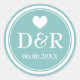 Monographie de mariage turquoise bleu et blanc pour les autocollants. Coeur mignon avec nom monogrammé initiales de la mariée et du marié plus la date du mariage. Merci personnalisées autocollants ou scellants d'enveloppe / scellés. Élégante typographie pour les initiales de mariée et de mariée. Design chic / design soigné. Couleur arrière - plan personnalisable. Design romantique de thème d'amour.