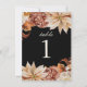 This lovely wedding table number sign features a border of watercolor flowers in beautiful autumn tones. Use card holders from catering or party supply retailers OR even purchase elegant photo frames to place on tables (available at a craft and other home stores). See below for more pieces in this collection!