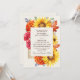Set the stage for an elegant event with this autumn wedding invitation. A lush and luxurious floral wedding invitation featuring a frame of sunflowers, red mums, lantanas, black-eyed susans, autumn leaves, and blue berries against a cream background. On the back of the invites is a QR RSVP code and wedding details. It is perfect for a dramatic and unforgettable celebration. They are ideal for those who appreciate timeless allure. PLEASE NOTE: The gold featured in this design is NOT REAL foil.