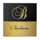 Elegant "B" Monogram Personalized Name Black Gold Tile