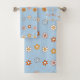 elegant baby blue pink and white orang cute floral pattern bath towel set.