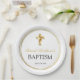 Elegant Baby Boy Baptism White & Gold Cross Paper Plate