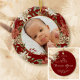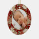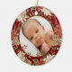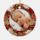 Commemorate your baby’s first Christmas with this elegant double-sided ornament. The front features a timeless red background adorned with festive poinsettias, pinecones, and greenery, framing a customizable photo of your little one. The back continues the charm with space to add your baby’s name, birth date, time, weight, and length in a graceful font, making it a true keepsake. Crafted from durable ceramic with a glossy finish, this ornament is perfect for capturing all the precious details of this milestone moment. Make this home decor your own and bring joy to your tree for years to come!