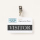 Cette élégante conception de badge comporte le message "VISITOR", ainsi qu'un nom de société personnalisable ou un autre message personnalisé. Un badge comme celui-ci pourrait peut-être être utilisé pour indiquer qu'une personne est un invité ou un visiteur connu et autorisé dans une entreprise ou un lieu de travail. [~Z0000307]