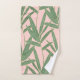 This modern Zen, fresh spring botanical Garden, luxurious gold strokes, Japanese green bamboo foliage, branch and leaves plant pattern, mysterious nature, exotic tropical foliage, over a simple blush pink background, lush trendy pattern, is great for everyday wear or home decor. A calm, serene, Summer tropical design, simple artwork image.